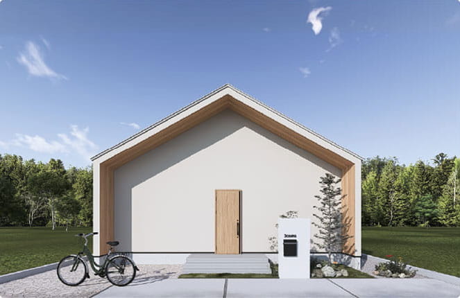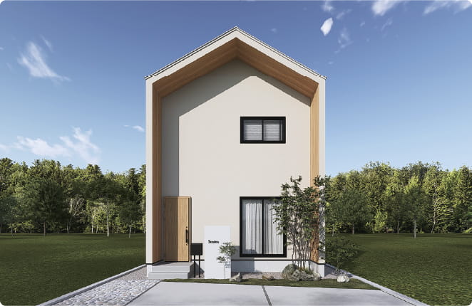天然木とアイボリーのナチュラルカラーでまとめた温かみのある外観。シンプルながらも細部にこだわりが光る仕様。
