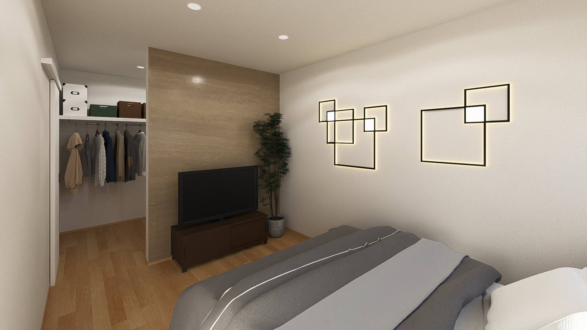 6帖の居室スペースに加え3帖のウォークインクローゼットを備えた、