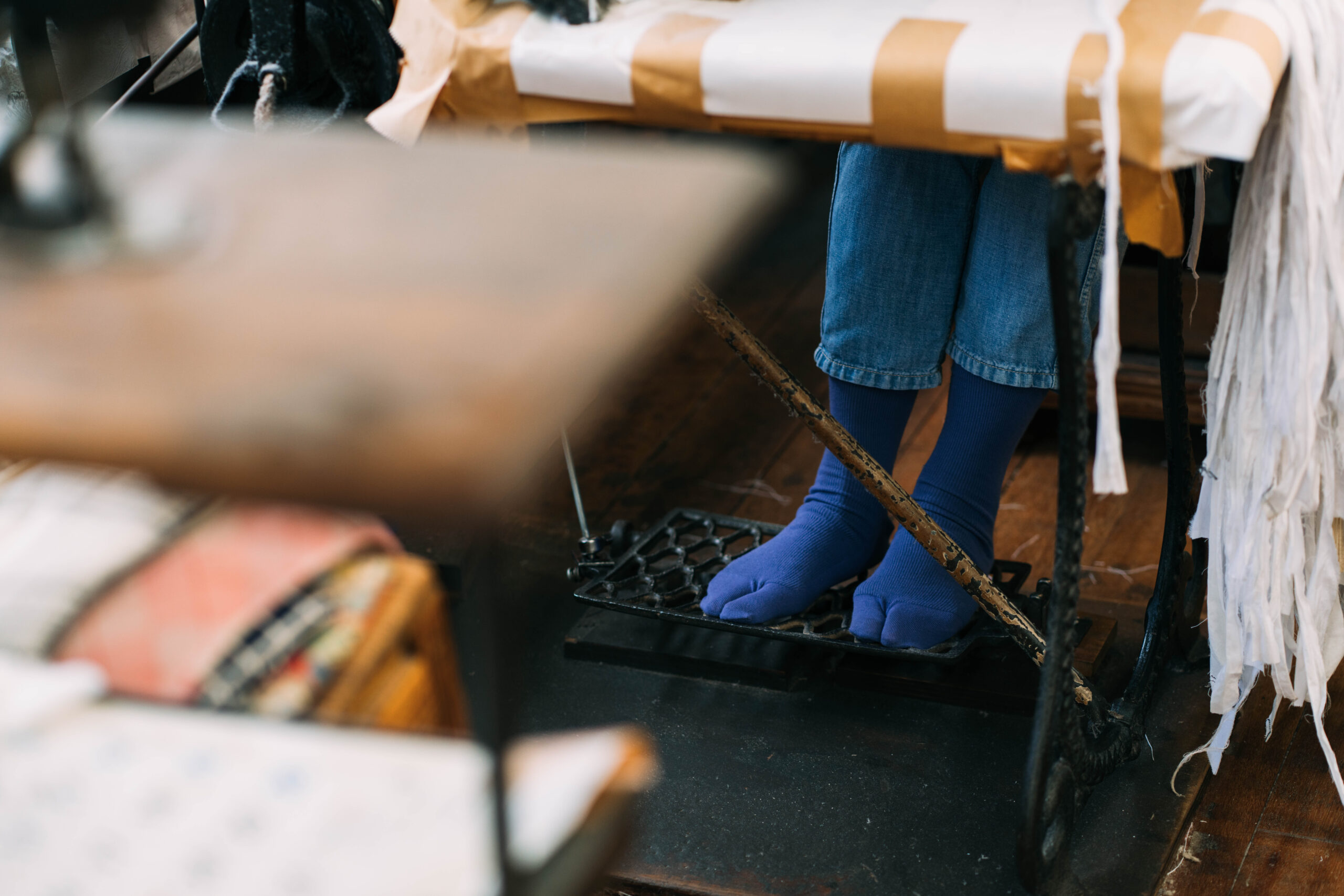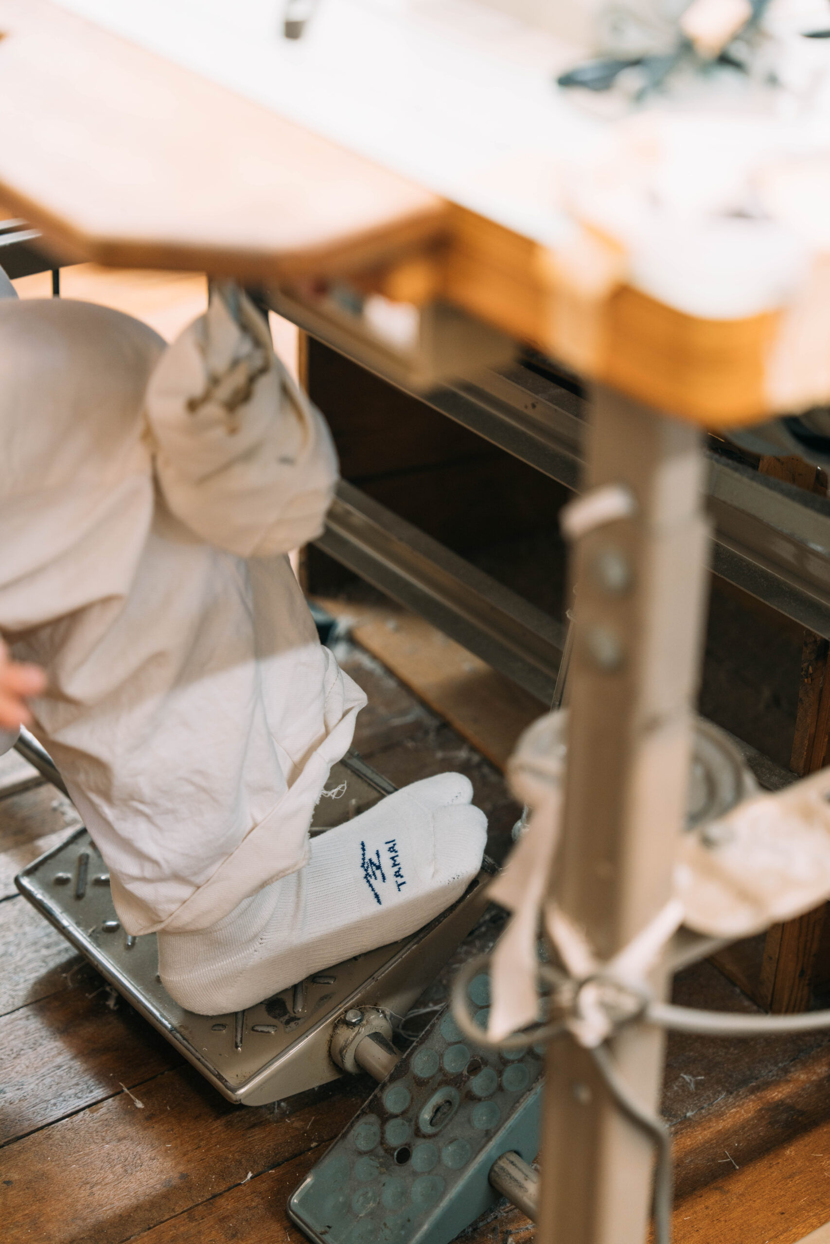 足袋は工程ごとにミシンを変える必要があり、特につま先の部分を縫うのは熟練の技術と特殊なミシンが必要とされる。