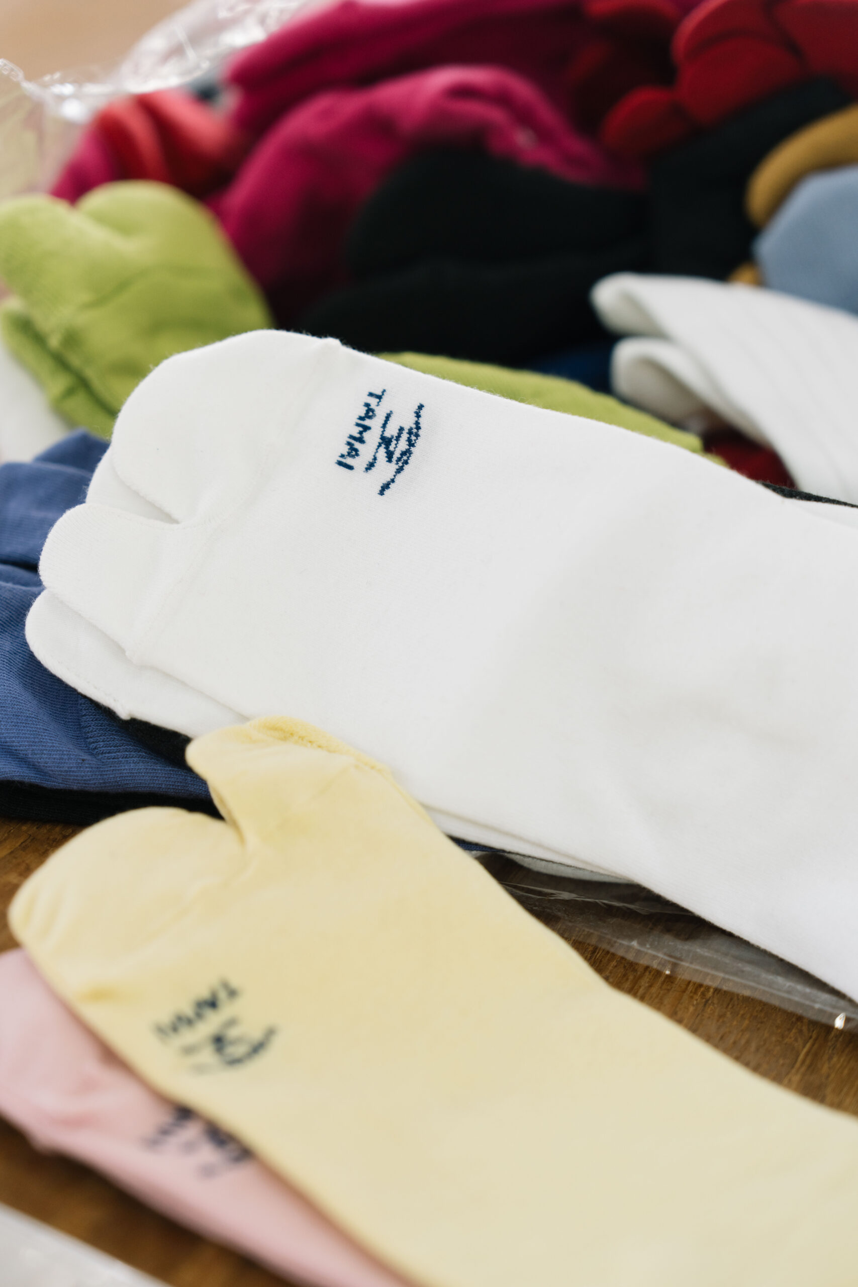 (株)玉井商店、開発部の婦木さんが眼を細める先にあるのは、現在、玉井商店が力を入れている靴下、“ TABI ”シリーズ。