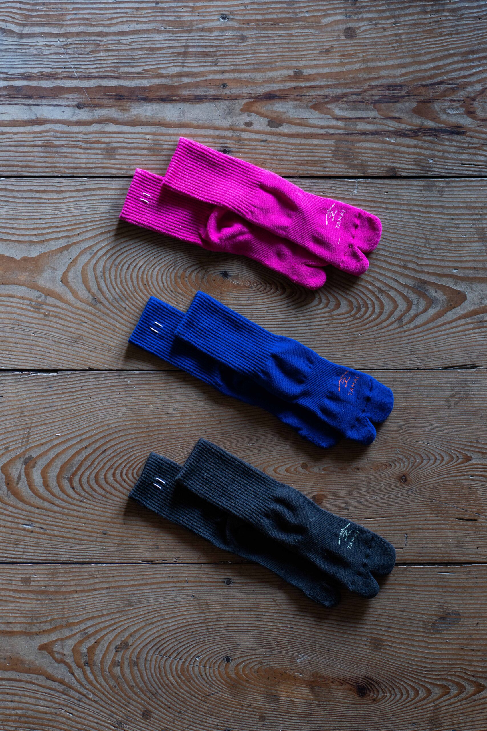 国内工場で一足一足手作業で縫製される “ TABI ” シリーズはかつて婦木さんが扱っていた、いわゆる「よく手に取られる靴下」の対極にあるような商品だ。